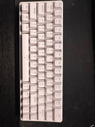 A Dierya Teclado Mecánico Gamer Inalámbrico 60% DK63 con Bluetooth/2.4G/Type-C,Red Switch Gaming Mechanical RGB Keyboard,Teclado Ultra-Compacto 68 Teclas para PC/Win/Mac,QWERTY,Blanco SIN CAJA SIN CABLE Compatible con cualquier cable tipo C USADO 7 MESES FUNCIONA BIEN El teclado está un poco sucio, por eso lo vendo a bajo precio.