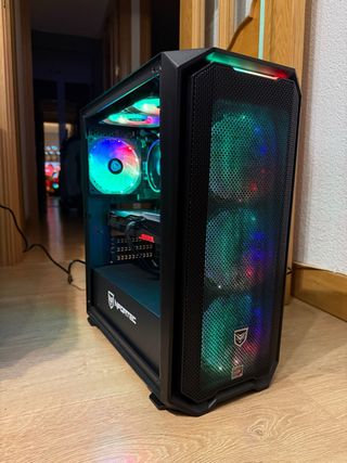 Torre de PC gaming con iluminación RGB personalizable. - Diseño moderno y elegante. - Panel frontal de malla para un flujo de aire óptimo. - Ventana lateral de cristal templado para ver los componentes. - Múltiples ventiladores con iluminación LED. -amd rayzen 5 5600g -32 gb ram - disco m2 de 1tb - fuente modular incluyo cables - grafica 3060 ti Escucho ofertas