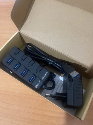 Hub USB VEMONT con 4 puertos para expandir la conectividad de tu ordenador. - Diseño compacto y ligero. - Conexión USB 3.0 para alta velocidad de transferencia.