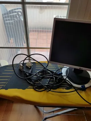 Monitor de ordenador LG con cables - no tiene HDMI - Color plateado y negro.