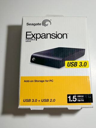 Disco portátil Seagate Expansion de 1,5TB, con conexión USB Micro-B, para cualquier tipo de aplicaciones y sistemas operativos (Windows, Mac, Linux). Se alimenta directamente desde el puerto del ordenador. Muy poco uso, por lo que está como nuevo. Se incluye embalaje original y manual. No se incluye cable de conexión. Precio: 50€. Precio no negociable. Entrega en mano en Guadalajara. Envíos, por Wallapop y por cuenta del comprador. No me interesan cambios.