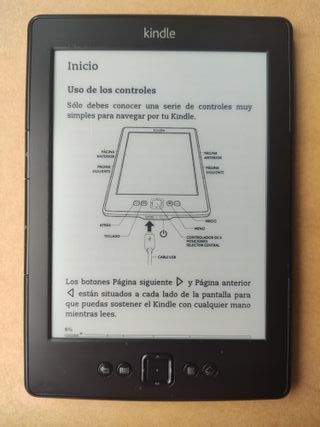 Amazon Kindle 5 en muy buen estado. Funciona perfectamente. Contiene más de 160 libros de nuestro tiempo. Funciona exclusivamente como lector offline. Los libros se cargan cómodamente desde el ordenador con un cable USB. Si tienes alguna duda, pregúntame antes de comprar. Contenido del paquete • Libro electrónico Amazon Kindle 5 • Funda protectora • Cable de carga y datos USB/mini USB Nuevo • 2 lámparas LED conexión USB Nuevo Regalo: Tarjeta microUSB Nueva -Si el regalo no te interesa, podemos cambiarlo. Puedes elegir entre los regalos que se indican en las imágenes finales.