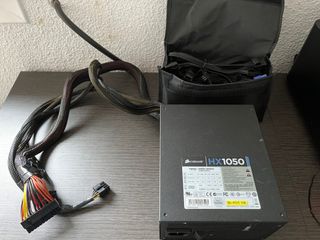 Fuente de alimentación Corsair HX1050 con certificación 80 Plus Gold. Ideal para equipos de alto rendimiento. - Modelo: HX1050 - Potencia: 1050W - Certificación: 80 Plus Gold - Modularidad: No especificada - Incluye bolsa para cables.