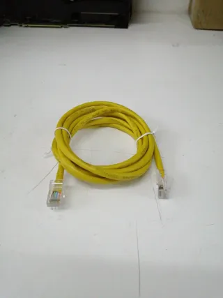 Cable de red con conectores RJ45. El cable tiene tiempo pero funciona correctamente. Hay varias medidas de estos cables para más información preguntar.