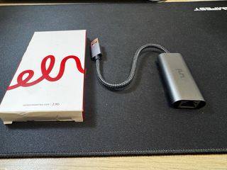 Adaptador de red UNI con conexión Ethernet de 2.5G. - Diseño compacto y moderno. - Cable trenzado duradero.