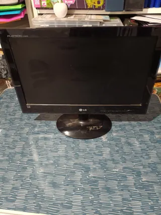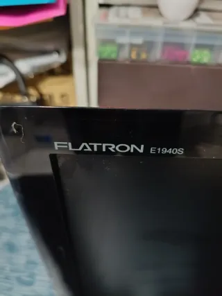 Monitor LG Flatron E1940S en color negro. Incluye cable de alimentación y cable VGA con adaptador VGA a HDMI.