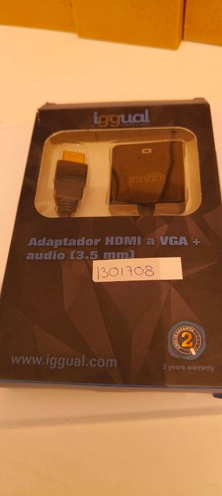 Adaptador de la marca Iggual para conectar dispositivos. - Conexión HDMI a VGA. - Incluye salida de audio de 3.5 mm.