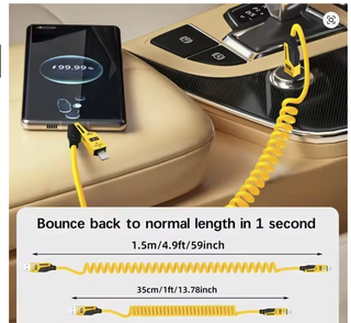 Cable de datos corto con resorte 4 en 1, 65W, 6A, USB tipo C, cargador rápido telescópico con resorte, Cable USB con resorte para iPhone 15 14 13 12 - Conector Lightning (para iPhone/iPad). - Conector USB-C. - Conector Micro USB. - Conector USB-A (para cargar).