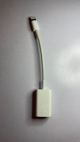 Adaptador oficial de Apple para conectar dispositivos USB a tu iPhone o iPad y exportar archivos. - Conector Lightning. - Puerto USB-A.