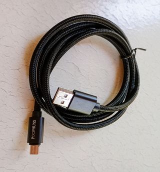 Tres cables USB trenzados de color negro. Son nuevos y están impecables. - Miden aproximadamente 1 metro de largo cada uno. - Dos cables tienen conector USB-A a Micro USB. - Un cable tiene conector USB-A a USB-C.