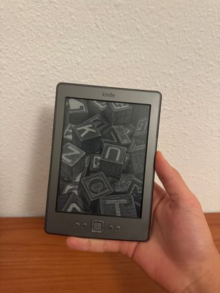 Lector de libros electrónicos Amazon Kindle en color gris. - Pantalla de tinta electrónica. - Diseño compacto y ligero. - Capacidad para cientos de libros. - Opción de descargarle los libros que quieras. No incluyo cable de carga, pero es el micro-usb de toda la vida. Para más info pregunta.
