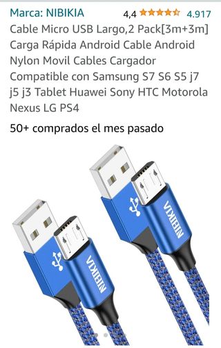 Dos cables micro USB de 3 metros de longitud cada uno, sin estrenar, me equivoque en la compra y no me sirven, su precio fue 8,99€