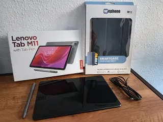 Vendo tablet Lenovo Tab M11 en color gris luna, como nueva. Poco uso. La vendo porque me han regalado otra. Incluye funda Smartcase de color negro, lápiz táctil, cable de carga y caja original. Características: Modelo Lenovo Tab M11. Tamaño de 11" pulgadas. 4 GB de RAM, 128 GB de almacenamiento interno. Resolución de pantalla 1920 x 1200. Sistema operativo Android. Batería de 7040 mAh, hasta 10 horas en reproducción de vídeo y hasta 15 W de carga rápida. Cámara de 8 mega píxeles. Wifi de 2,4/5G Bluetooth 5.1 PRECIO NO NEGOCIABLE. NO ACEPTO INTERCAMBIO. Entrego en mano en Torrent o Valencia.