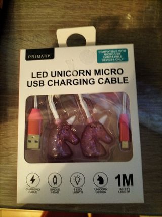 nuevo a estrenar,cable para cargar el móvil con luces unicornio
