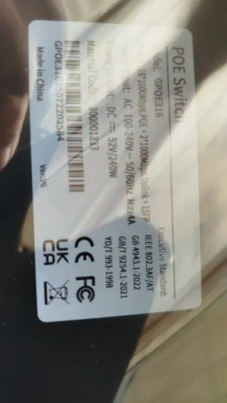 Conmutador de red Gigabit PoE. - Incluye manual de usuario. - Cable de alimentación. - Certificaciones CE, FC, UKCA. Conmutador Gigabit PoE Completo, Dispositivo de vigilancia AI de 16 Puertos, Potencia integrada, 240W, Red de conmutador Ethernet
