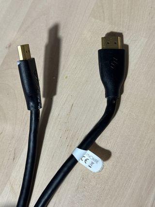 Cable de conexión HDMI a Mini HDMI con una longitud de 1.5 metros. - Conectores chapados en oro. - Cubierta trenzada de tela. - Ideal para conectar dispositivos con salida Mini HDMI a pantallas con entrada HDMI estándar. Desconozco la marca.