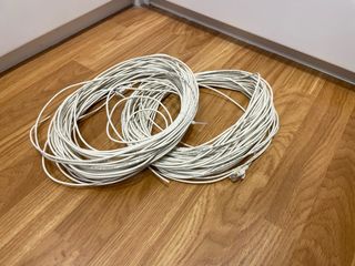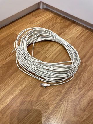 Cable de red Ethernet Cat 6A de la marca Elfcam, con una longitud de 30 metros. Es un cable ultra fino. ‼️ En un extremo tiene conector y en el otro está cortado. Habría que ponerle su conector correspondiente. ‼️Se venden juntos o por separado ‼️ Precio: 1 cable = 17€; 2 cables = 34 - Marca Elfcam - Longitud 1 cable 30m , el otro 29,60m aprox - Color blanco. - Conectores RJ45 -Elfcam - 30m Ethernet Cat 6A Ultra Fino 10Gbps 32 AWG UTP OD2.8 mm 500MHz 10Gb Fino RJ45 Cat 6A para LAN, Enrutadores, Módems, Computadoras Portátiles y Servidores Xb, Blanco, 30 Metro