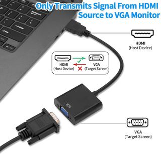 Este adaptador te permite conectar dispositivos con salida HDMI a pantallas con entrada VGA. Con entrada de sonido y de alimentación.