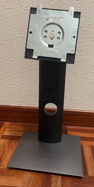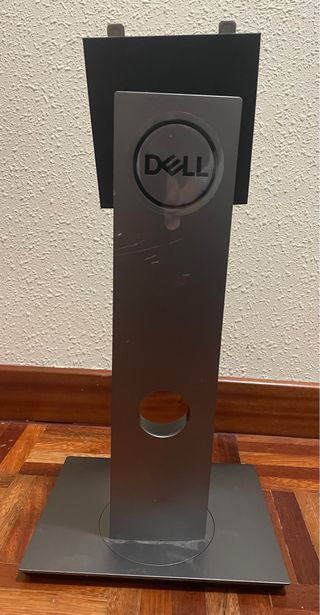 Soporte de mesa para monitor Dell. Diseño elegante y funcional. Regulable en altura y orientación. Muy poco uso. - Color negro y gris. - Base cuadrada. - Columna central con orificio para gestión de cables. Tiene unas rayas en la parte trasera y le falta una almohadilla en la base (ver fotos)