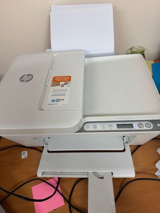Impresora multifunción HP Deskjet 4120e en color blanco. - Escáner integrado. - Bandeja de salida extensible. - Panel de control con botones. - Conexión para cable de alimentación.