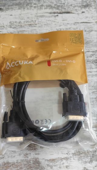 Cable DVI-D a DVI-D de la marca ACCURA, nuevo. - Conector DVI-D a DVI-D. - Longitud de 1,8 metros. - Cable negro, en perfecto estado.