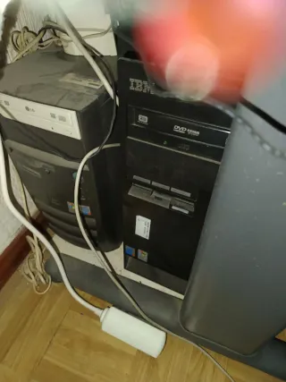 Conjunto de componentes de ordenador. - Torre de ordenador IBM. - Unidad de CD/DVD LG. - Cables de conexión incluidos.