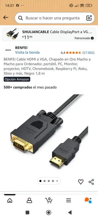 Cable adaptador de HDMI a VGA de la marca Benfei. Conectores macho en ambos extremos. - Conector HDMI chapado en oro. - Conector VGA chapado en oro. - Cable de alta calidad.