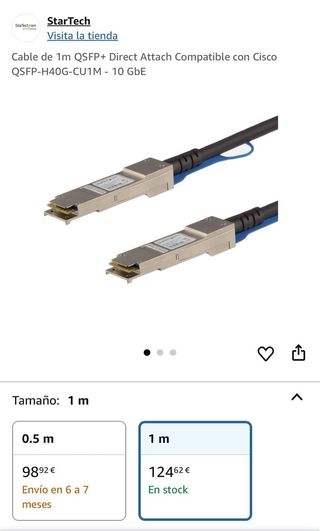 Vendo cable QSFP+ Direct Attach de StarTech, compatible con Cisco QSFP-H40G-CU1M. Tiene una longitud de 1 metro y ofrece una velocidad de 10 GbE. - Está en perfecto estado. - Se incluye un cable. - Ideal para conexiones de alta velocidad.