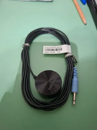 Cable extensor de infrarrojos (IR) de la marca Samsung. Permite extender el alcance de la señal infrarroja. - Cable extensor IR. - Conector de 3.5mm. Permite extender la señal del mando a distancia. Ref. BN96-31644A 1409