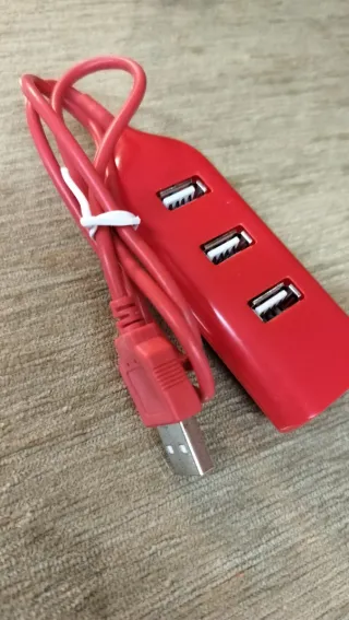 Hub USB de 4 puertos en color rojo. - Diseño compacto y alargado. - Cable USB integrado.