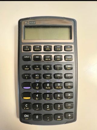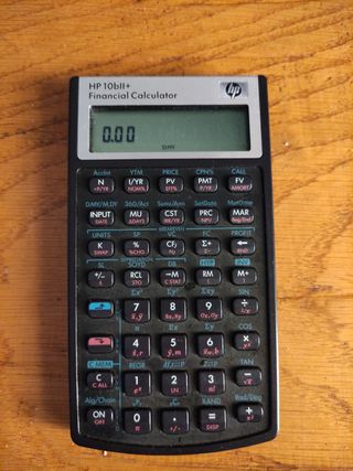 Calculadora financiera HP 10BII, un modelo clásico de hace unos 30 años. Ideal para coleccionistas o para quienes buscan una herramienta de cálculo financiera robusta y fiable. - Diseño compacto y duradero. - Pantalla LCD de fácil lectura. - Teclado completo con funciones financieras.