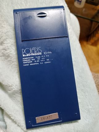 Antigua pero en perfectas condiciones, creo que es de los años 70. Al funcionar los números son en rojo y de led's. La marca es POLARIS. Con pilas incluidas.