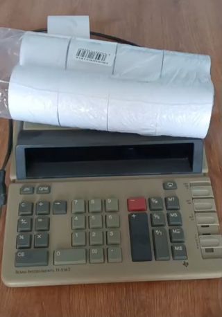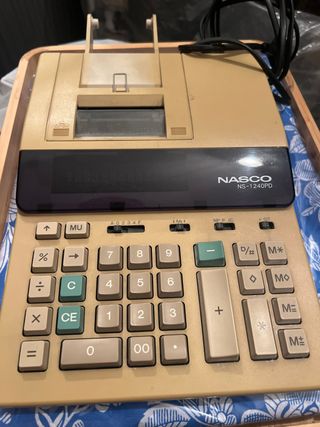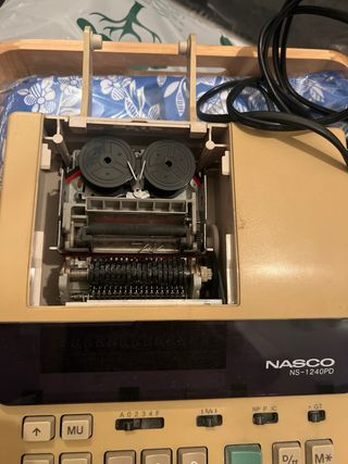 Calculadora eléctrica antigua con rollo de papel todavía imprime, no se manejarla