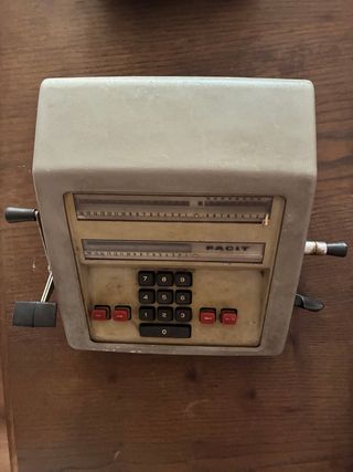 Calculadora de escritorio Facit antigua. Se encuentra en buen estado de conservación, aunque muestra señales del paso del tiempo. - Modelo antiguo de la marca Facit. - Diseño clásico y compacto.