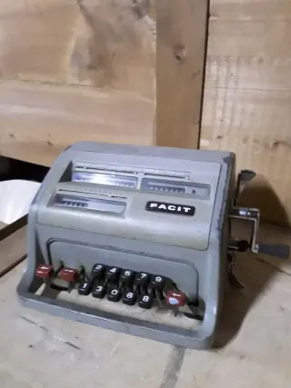 Calculadora mecánica antigua de la marca Facit. Un objeto de colección con un diseño clásico. - Mecanismo de cálculo manual. - Teclado numérico completo. - Palanca lateral para operaciones. Ref coAja corral 3