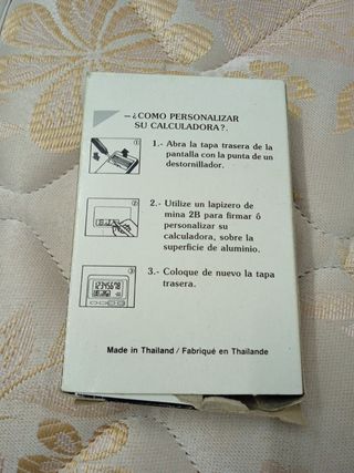 Calculadora personal científica Casio FX-850P con su manual y accesorios. - Incluye manual del propietario. - Funda protectora negra. - Tarjeta de referencia rápida de matemáticas. Solo le queda un tornillo para sujetar la tapa. He puesto la foto de los cambios de pilas. Se acabaron las pilas y dejé de usarla . Desconozco si con pilas nuevas funcionaría. Nombre de antiguo propietario en el interior del libro