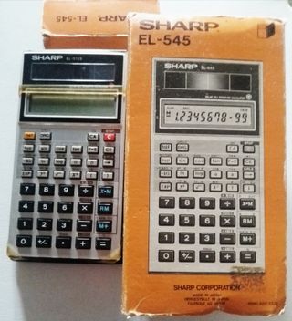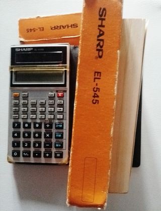 Antigua calculadora científica solar ochentera Sharp EL-545 EL-515. Incluye caja y manual de instrucciones original. La funda carpeta también es la original y pese al tiempo que tiene está entera y sin roturas, incluso la banda de sujeción y esquineras.