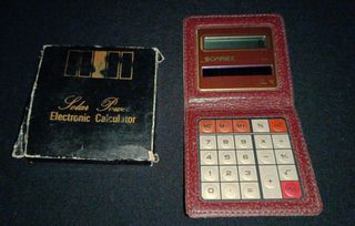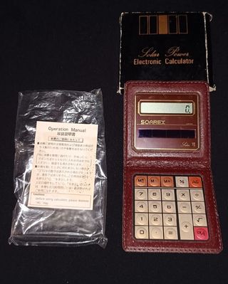 Preciosa y antigua calculadora solar vintage SOAREX VI con funda de piel. - Diseño compacto y portátil. - Funciona con energía solar. - Incluye manual de operación.