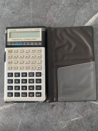 Calculadora financiera Casio FC-100 con funda y en perfecto estado, apenas se usó para dos exámenes. Modelo antiguo perfecto funcionamiento. Lleva pila de botón como se ve en la foto hay que cambiarla. Ideal para colecionistas Se escuchan ofertas razonables Zona tablas Facilidad quedar