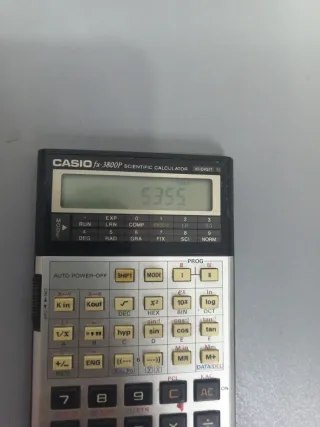 Calculadora científica Casio fx-5200P, un modelo vintage de bolsillo. Articulo de coleccionista. La calculadora no tiene marcas de uso (ningun arañazo). Y conserva envoltorio y manual original (en bastante buen estado, considerando el tiempo que ha pasado). Regalo perfecto para nerds del vintage o gente mayor que le guste hacer numeros a la vieja usanza :P Funciona pero no tiene pilas.