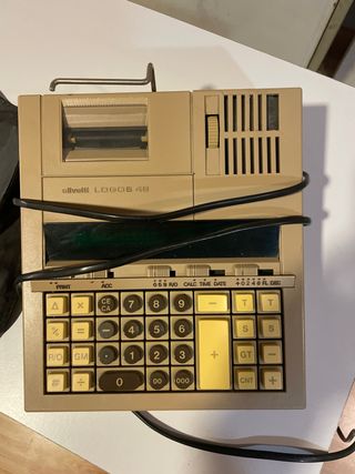 Calculadora electrónica Olivetti Logos 48 en buen estado y perfecto funcionamiento. Se incluyen rollos de papel para las impresiones - Modelo Logos 48. - Impresora incorporada. - Pantalla LCD.