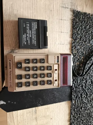 Calculadora electrónica Canon Canola L120 con pantalla Nixie. Un modelo clásico para coleccionistas. - Diseño retro en beige y negro. - Teclado numérico completo. - Funciones de memoria y operaciones básicas. Cable no original. Funcionando perfectamente. etiquetas: casio busicom sinclair