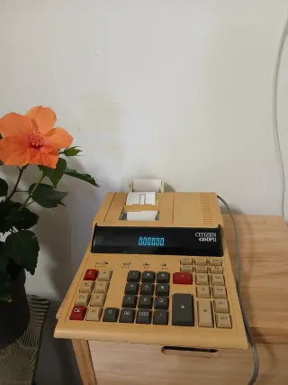 Calculadora electrónica vintage Citizen 420DPII. - Diseño retro. - Pantalla digital. - Incluye rollo de papel para impresión. Ideal para coleccionistas. Funciona perfectamente.