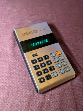 Calculadora electrónica vintage Homeland 8011 con pantalla LED verde. -Bonita calculadora de los años 70 japonesa. -Usada,rayitas marquitas,pequeños golpecitos del uso etc,tiene 50 años. -Pero Funciona perfectamente como el primer día. -Fijese en las fotos es la mejor descripción. -Ideal colección o regalo,o uso diario con un toque retro. - Modelo: 8011 - Tipo de pantalla: LED - Color de la pantalla: Verde - Diseño retro. Se envía por wallapop mediante Correos. -Mas cosas en el perfil.