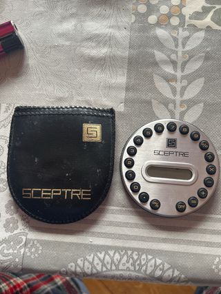 Calculadora vintage de la marca Sceptre, fabricada entre los años 70 y 80. Un objeto de colección con un diseño clásico. le falta la pila acepto cambios o escucho ofertas - Diseño compacto y portátil. - Acabado en cuero negro. - Logo de la marca Sceptre grabado.