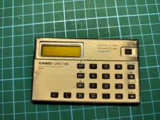 Calculadora electrónica Casio ST-24 CARD TIME. Se desconoce si funciona. Estado estético usado, ver fotos. Envío por wallapop EXCEPTO CORREOS Calculadora reloj vintage antiguo antigua retro