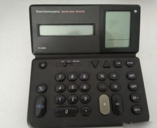La impresora sin papel TI-5038 es una Calculadora aritmética con precisión de 8 dígitos y lógica algebraica. Tiene 10 funciones, 28 teclas y pantalla LCD ( cristal líquido) Los cálculos se hacen en la pantalla principal. En lugar de la impresión habitual en un papel, los resultados se trasladan a través de una segunda pantalla de 6 lineas. Con las teclas de flecha se pueden almacenar y desplazar hacia arriba y abajo hasta un máximo de 99 líneas.Funciona con 3 pilas Aa. Esta hecha en Taiwan. Es de los años 80 y funciona bien. esta muy cuidada.