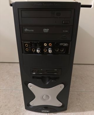 Ordenador retro funcionando perfectamente con Windows 7 Ultimate 64-bit original y activado. Lleva AMD Athlon || X2 255 3.11GHz, 4GB DDR2, HDD 500GB, placa ASUS M2N68-AM Plus y gráfica integrada NVIDIA GeForce 7025 (VGA). Incluye tarjeta de sonido dedicada Creative Sound Blaster X-Fi XtremeMusic (SB0460) con módulo frontal 5,25": salida de auriculares, entradas jack 6,3mm, RCA estéreo, SPDIF óptico y coaxial (in/out) y MIDI. Sonido de alta gama con EAX real. También capturadora AVerTV 203 PCI para VHS o consolas clásicas con conexiones de antena TV RF, RCA amarillo de vídeo compuesto y S-Video.