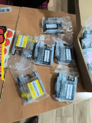 Pack de cartuchos de tinta nuevos, sin usar, compatibles con impresoras Brother. Incluye: • 2 × Negro LC223 • 1 × Cian LC-221C / LC-223C • 1 × Magenta LC-221M / LC-223M • 2 × Amarillo LC-221Y / LC-223Y 👉 Todos están en su bolsa sellada, nunca abiertos. 👉 Marca compatible (NO original). 👉 Ideales como pack de repuesto. Entrega en mano en Madrid o envío a toda España.