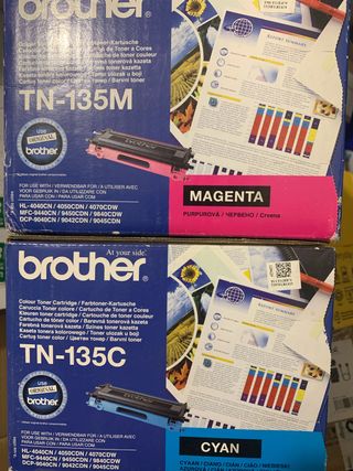4 unidades Cartuchos de tóner Brother TN-135M (Magenta) y TN-135C (Cyan). Ideales para impresoras Brother. - Tóner Magenta TN-135M. - Tóner Cyan TN-135C. - Regalo 2 unidades yellow y cyan compatibles - Compatibles con modelos HL-4040CN, 4050CDN, 4070CDW, MFC-9440CN, 9450CDN, 9840CDW, DCP-9040CN, 9042CDN, 9045CDN.